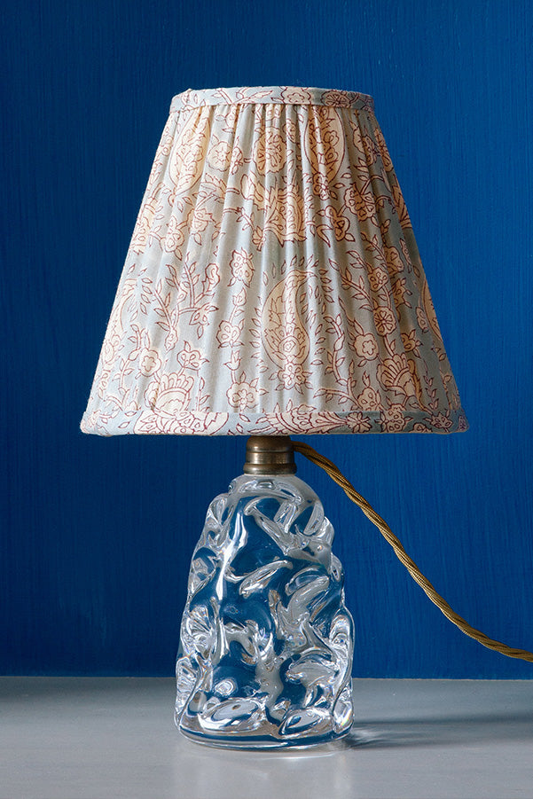 We are a small company, designing and making lamps and lampshades (and a few other things) sustainably and ethically in the UK. We spend a lot of time focusing on the details, how the grain of wood lies on a lamp for example or the quality of light from a shade. We have our own collection of lamps in wood, glass, metal and ceramics and a changing page of one-off vintage lamps sourced and restored by us. We also have an extensive bespoke lampshade service using our house off-white linen and card alongside a source book of plain linens, silks, patterns and unusual materials. We can advise on shapes, recover old shades, rewire and adapt older lamps and are up for a challenge.